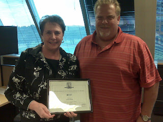 BDP award winner Sandee Nikles with Mike Connors, Regional Director-BDP Charlotte-US